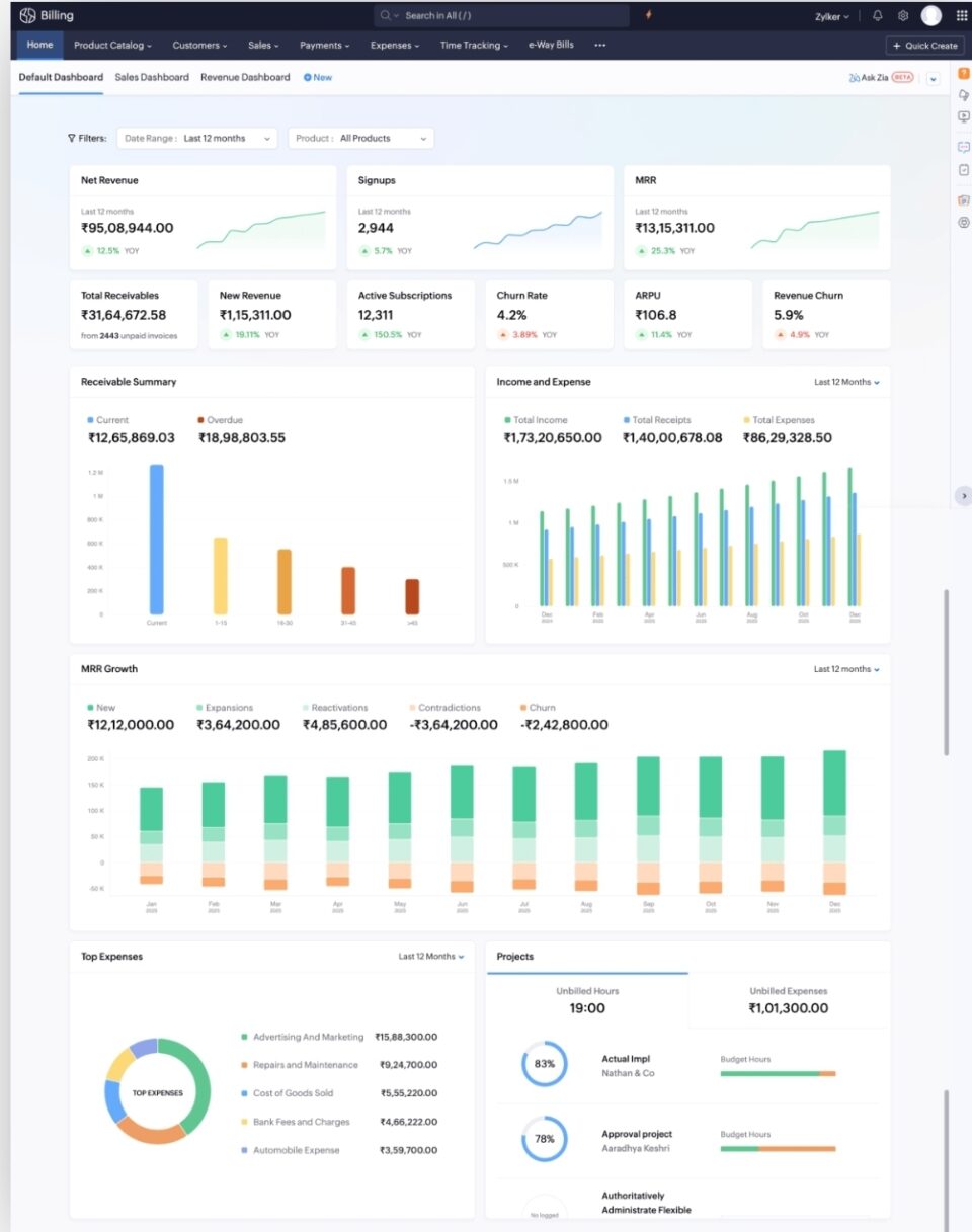 Both Zoho Billing and Zoho Spend embed analytics deeply within workflows, enabling a proactive rather than reactive approach to decision-making.