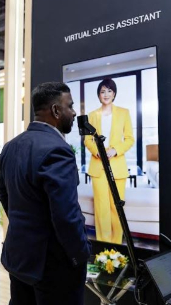 The assistant allows potential buyers to explore projects instantly, access information, and book site visits. The technology will soon expand beyond exhibitions into malls and airports.