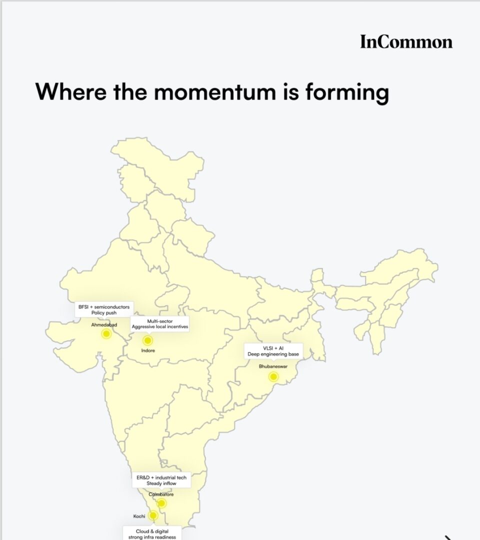 Ahmedabad, Indore, Bhubaneswar, Coimbatore, and Kochi feature strongly in the current momentum map.